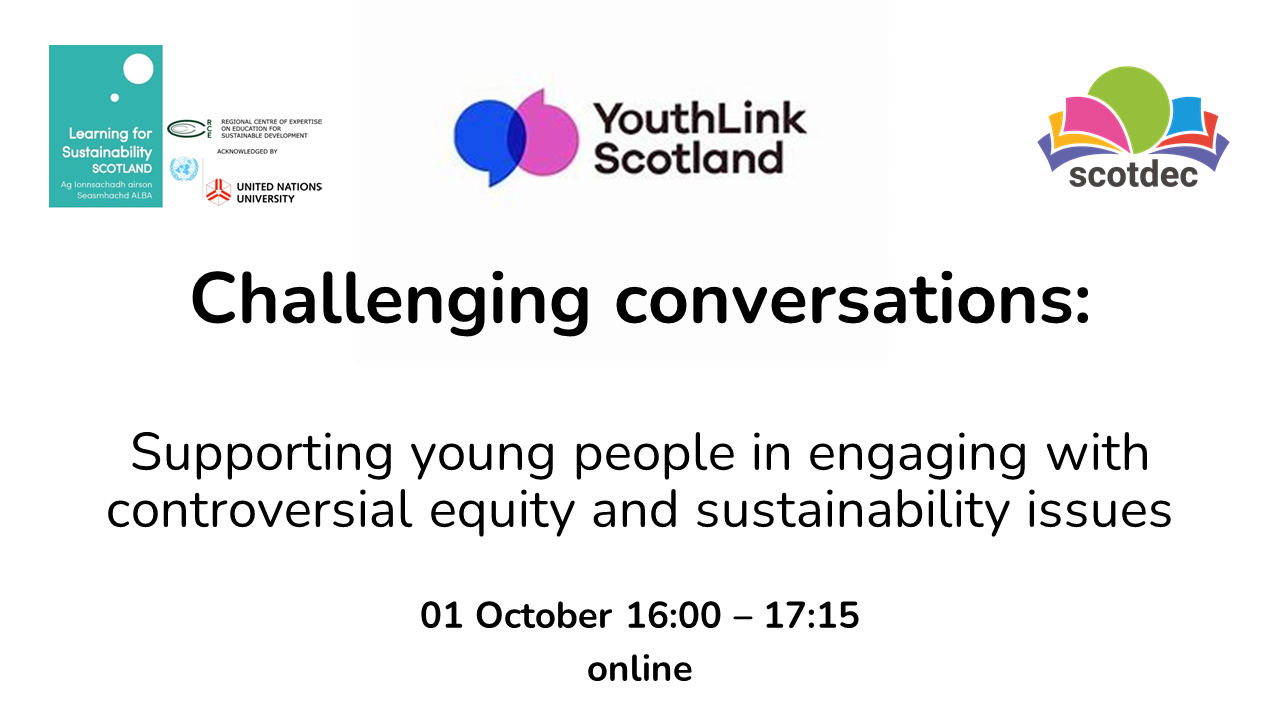 Join LfS Scotland, YouthLink and ScotDEC as we discuss ways in which educators can support young people to confidently engage with controversial issues in today’s complex and uncertain world.